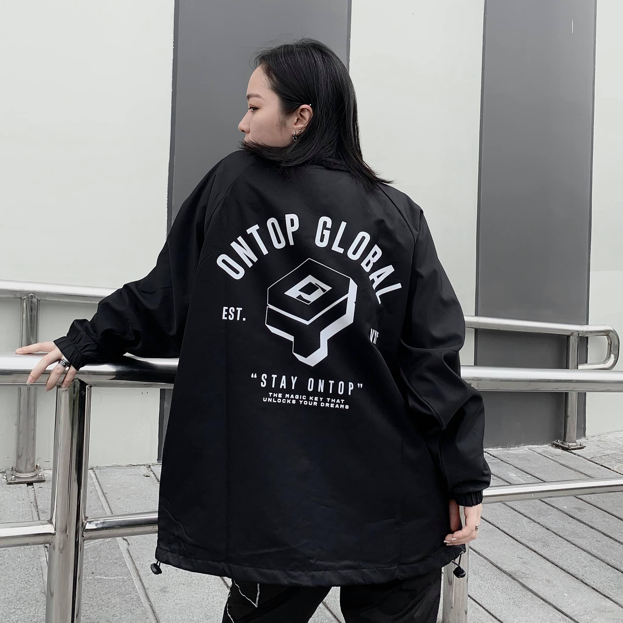 Những thiết kế áo khoác streetwear của local brand ONTOP thường nhấn ở mặt sau, và đơn giản ở mặt trước tạo sự cá tính cho set đồ.