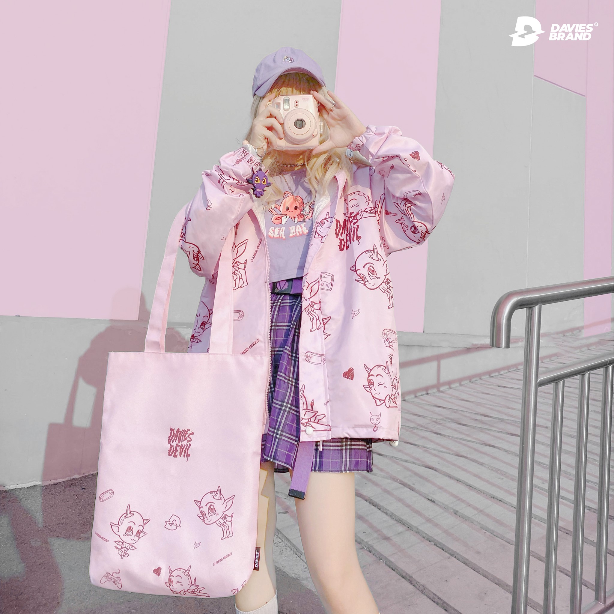Áo khoác streetwear DSS JACKET D DEVIL SS2 kết hợp cùng túi tote DSS TOTE D DEVIL SS2 của local brand Davies