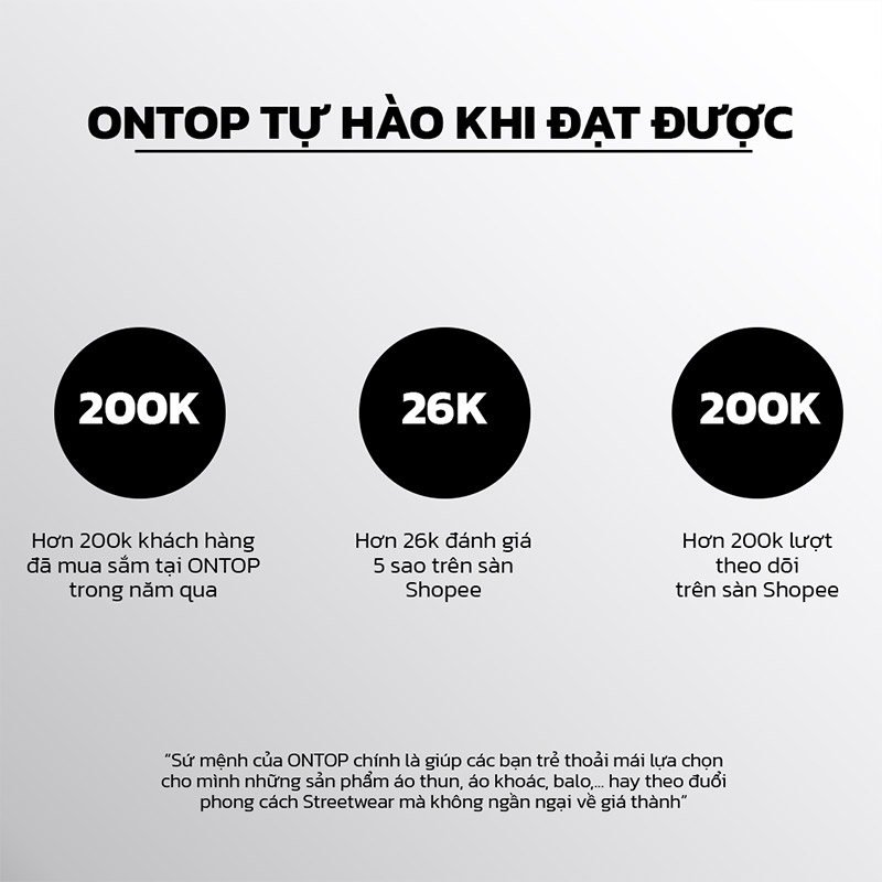 Xem Nội Dung Sản Phẩm »ONTOP được biết đến là một local brand với phong cách thời trang đường phố (streetwear). Các sản phẩm của ONTOP đều hướng tới các bạn trẻ là nam và nữ thích mang đồ local brand nhưng chưa biết cách phối đồ.