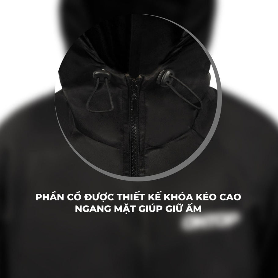 Ở mẫu áo khoác dù Worldwide, phần cổ áo được thiết kế cao tạo điểm nhấn, đồng thời giúp giữ ấm mặt. Bên dưới thân áo có gắn tag logo nhận diện thương hiệu, tránh hàng giả và kèm dây rút tiện lợi, bạn có thể tùy ý điều chỉnh form áo.