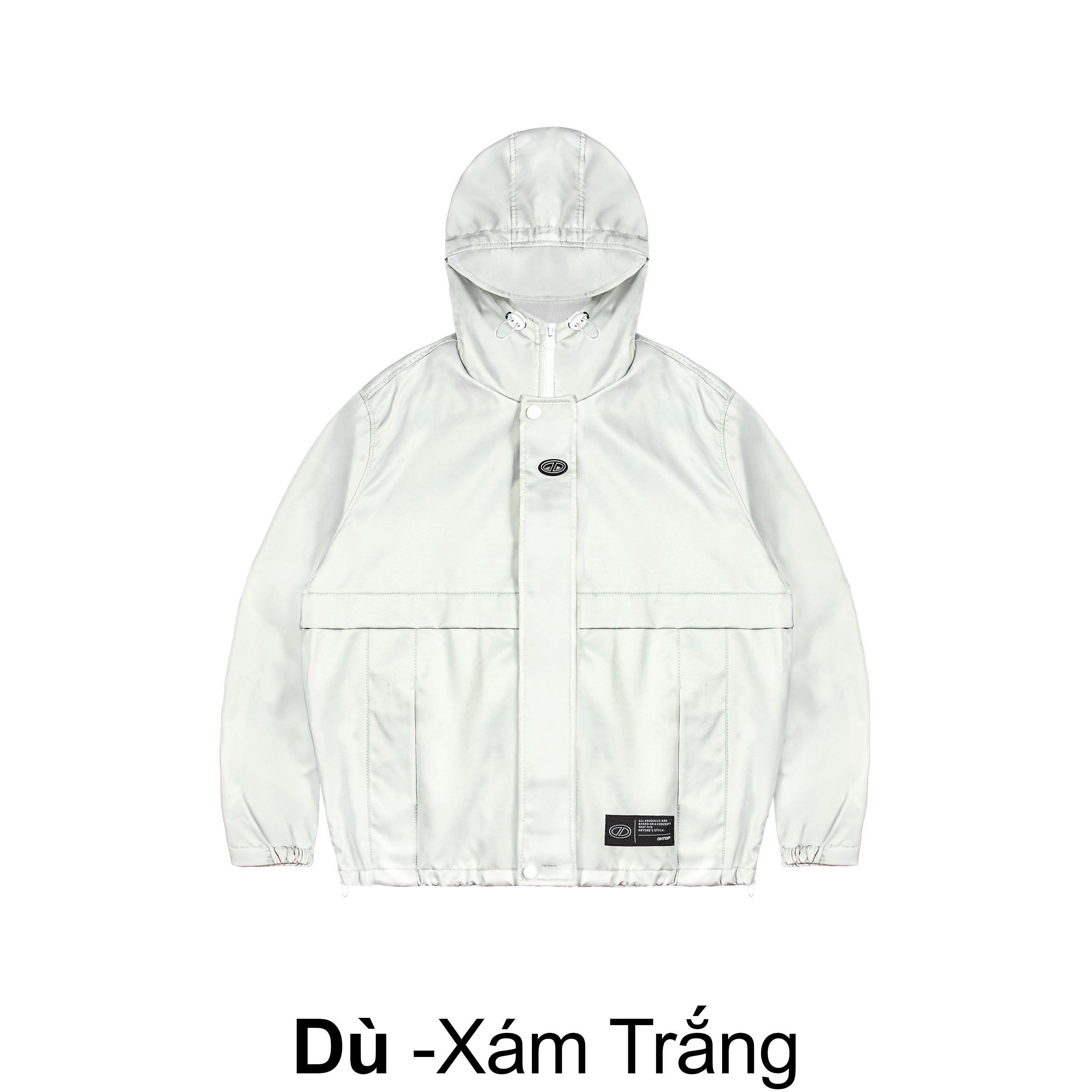 Cổ áo & mũ trùm: Cổ đứng nối liền với mũ trùm đầu có dây rút điều chỉnh ba điểm — che chắn linh hoạt trước nắng, gió hay mưa nhẹ.