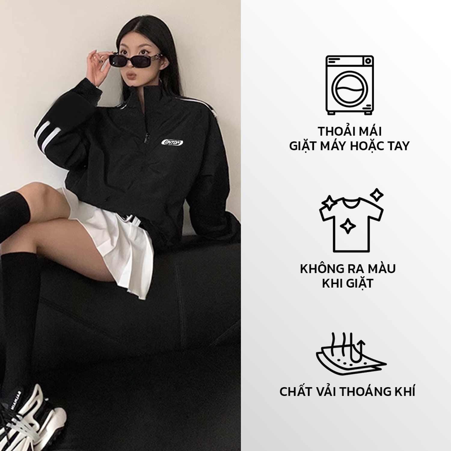 Áo khoác local brand có thiết kế cổ trụ ôm quanh phần cổ giúp bạn bảo vệ cổ họng không bị lạnh vào ngày đông hoặc có thể che chắn khi trời nắng.