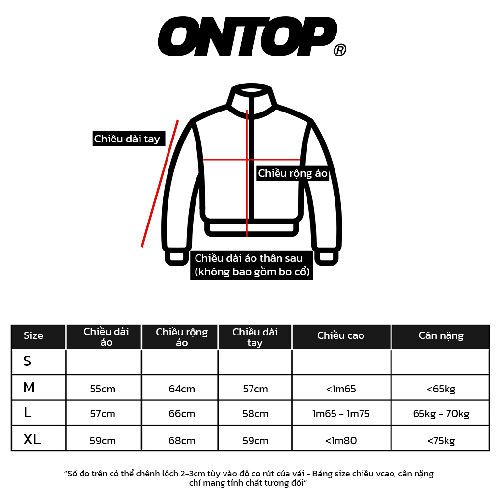 Áo được may theo size tiêu chuẩn ONTOP.