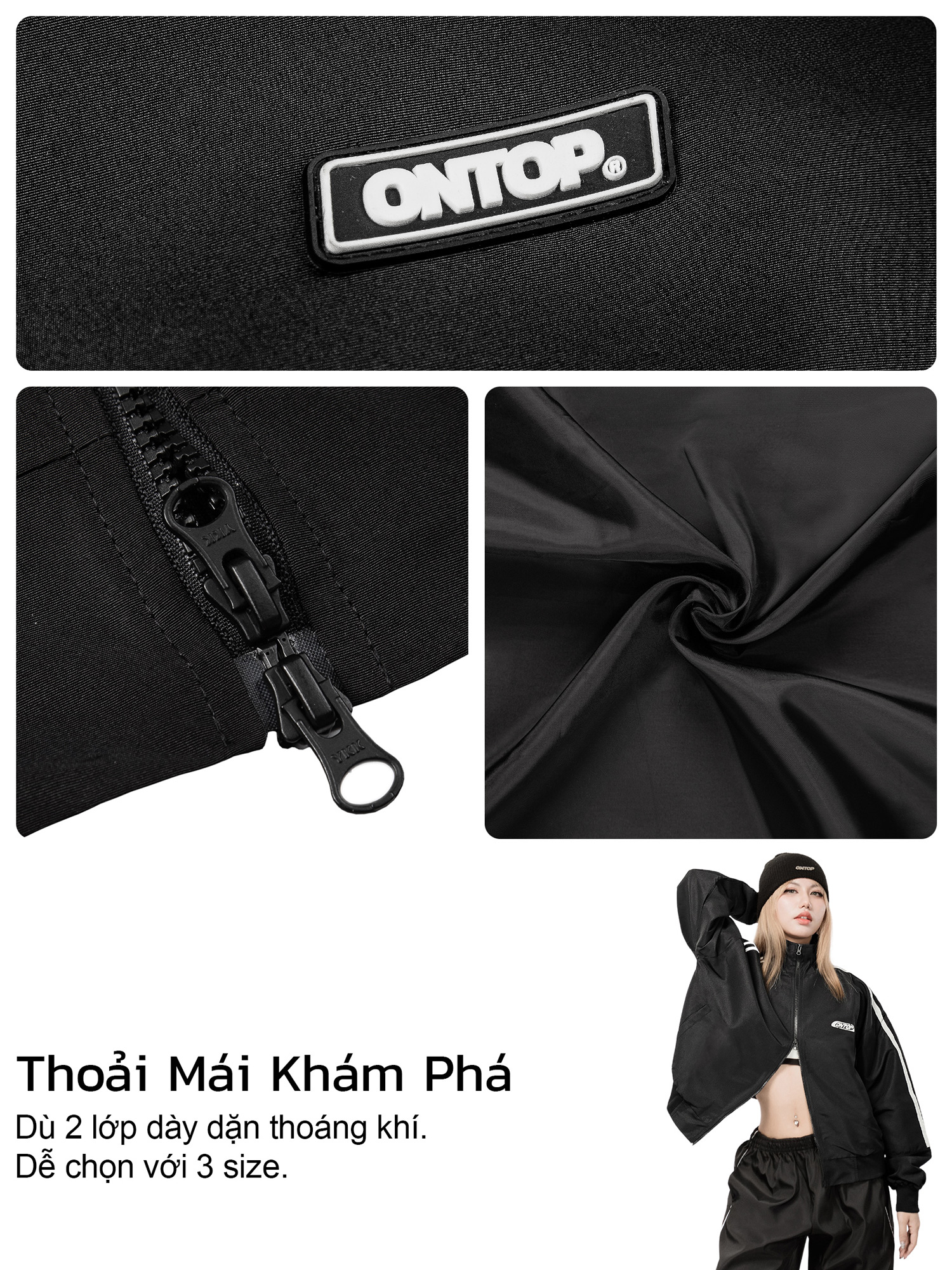 Đội ngũ thiết kế và sản xuất của ONTOP đã khéo léo lựa chọn dây khoá kéo 2 đầu ấn tượng và rất chắc chắn giúp bạn dễ dàng điều chỉnh form áo