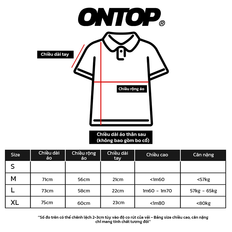 Để giải quyết vấn đề cổ áo bị giãn ONTOP đã lựa chọn ra được kích thước cổ áo tiêu chuẩn để tăng sự hài lòng của khách hàng.