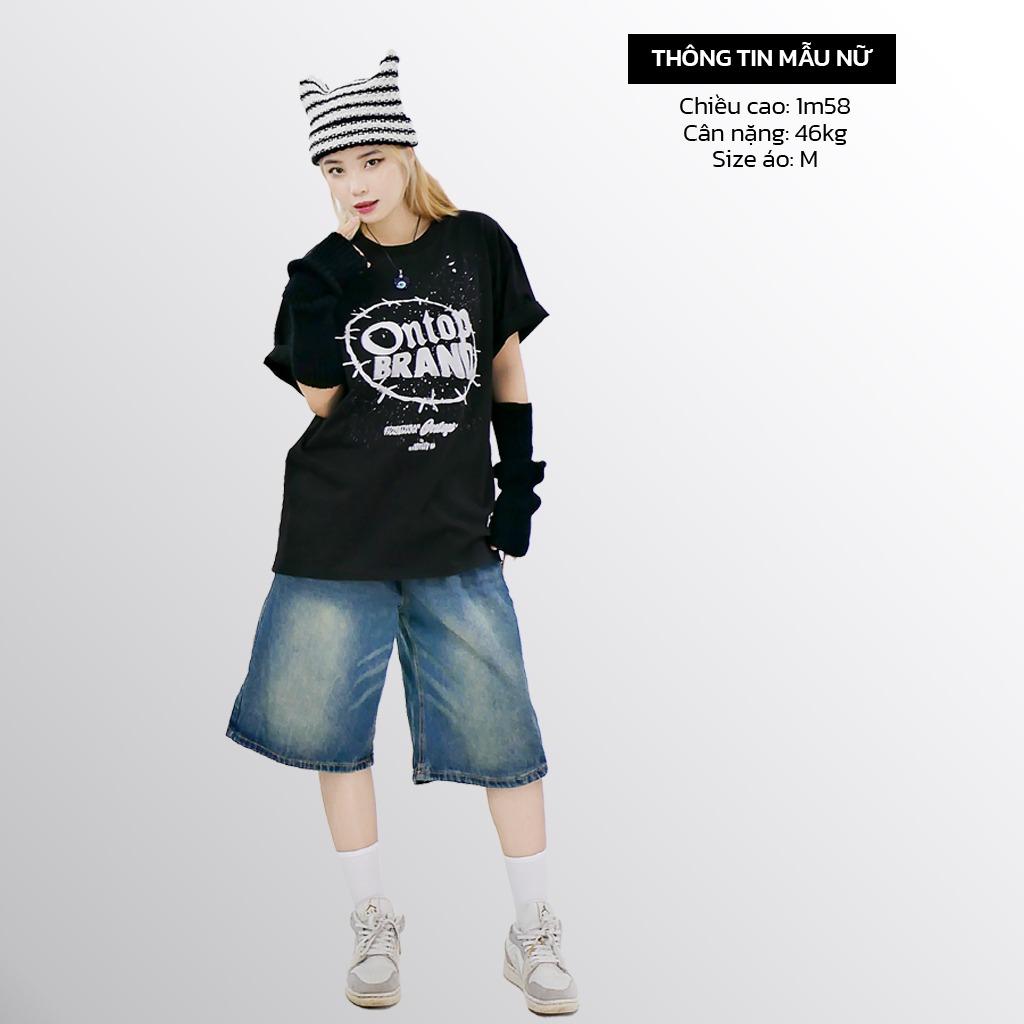 Cầm trên tay mẫu local brand áo thun Tee Trame, thứ đập vào mắt ta đầu tiên chính là hình in chữ ONTOP BRAND cách điệu cùng với vòng tròn gai góc bên ngoài. Đây là mẫu hình in độc lạ đúng với tinh thần táo bạo, dám thử dám trải nghiệm mà ONTOP theo đuổi.