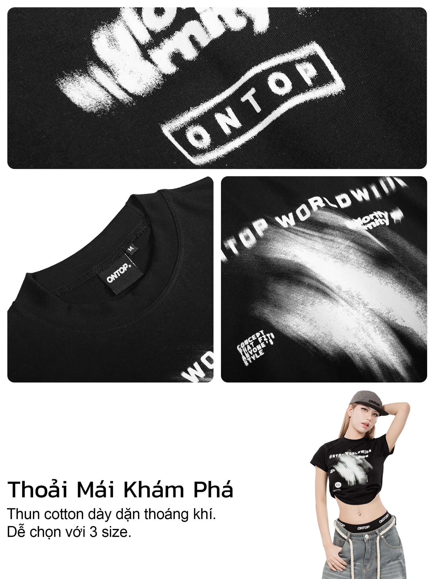 Bắt kịp xu hướng thời trang Y2K năng động, hiện đại local brand ONTOP đã cho ra mắt thiết kế áo baby tee. Thiết kế "áo thun em bé" nhà ONTOP giúp người mặc tôn dáng và tôn da nhờ màu sắc và kiểu dáng đặc biệt. Hình in artwork cùng logo "ONTOP WORLWIDE" ngay mặt trước của áo khá độc đáo và tạo điểm nhấn.