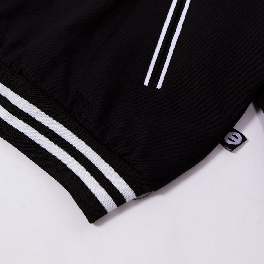 Hướng theo phong cách thời trang tối giản, ONTOP ra mắt mẫu áo khoác varsity local brand với thiết kế đơn giản nhưng không nhàm chán bởi tông màu đen, trắng và đường kẻ sọc chạy dọc cánh tay.
