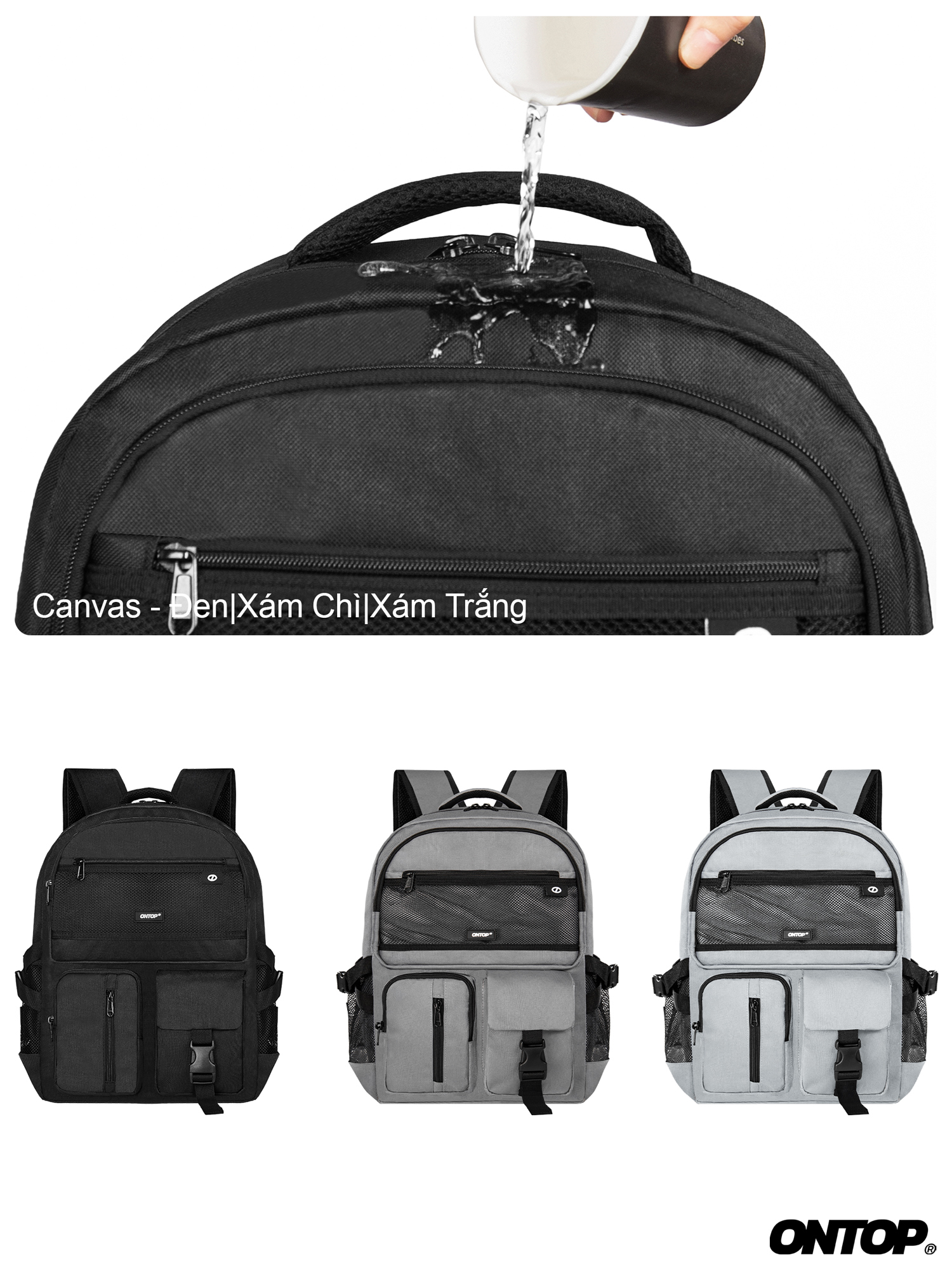 Balo ONTOP màu đen mới được làm từ chất liệu canvas cao cấp, có khả năng chống thấm nước tốt. Chất liệu canvas cũng rất bền bỉ, có thể chịu được tải trọng cao. Balo có lớp lót bên trong bằng vải dù mềm mại, giúp bảo vệ các vật dụng cá nhân của bạn khỏi trầy xước.