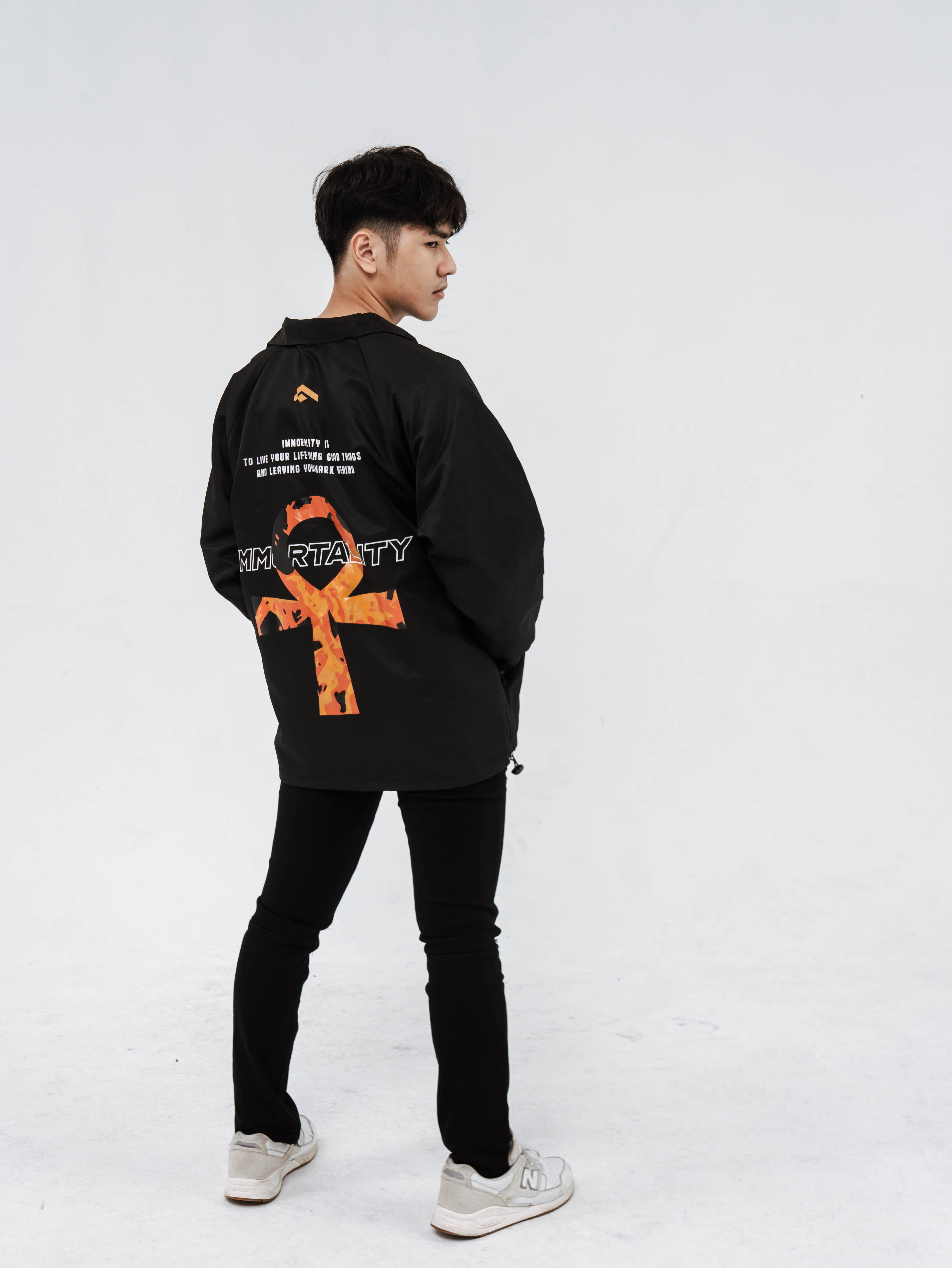 Nằm trong BST IMMORTALITY EXTENDED - Sự khởi đầu cho hành trình “bất tử” trong phong cách thời trang của local brand ONTOP. Bất tử ở chính thiết kế, biểu tượng lẫn ý nghĩa. Với thiết kế vải dù mero 2 lớp, kháng nước nhẹ và không bay màu. Có thể giúp bạn chịu được cái nóng đang gay gắt hiện tại của mùa hè hoặc những cơn mưa lâu ngâu.Biểu tượng chìa khóa Ankh rực lửa được in sau mặt lưng, làm nổi bật trên nền đen do tông màu đổ rực kết xuyến một chút cam được in bằng công nghệ thủ công, giúp họa tiết của chiếc áo luôn trường tồn theo thời gian. Thêm một đặc tính thú vị của chiếc áo khoác Immortal Fire này chính là tay bo chun và dây rút tùy chỉnh rộng chật ở thân áo , form áo rộng khiến người mặc dù ở thân hình lứa tuổi nào cũng cảm thấy rất thoải mái.