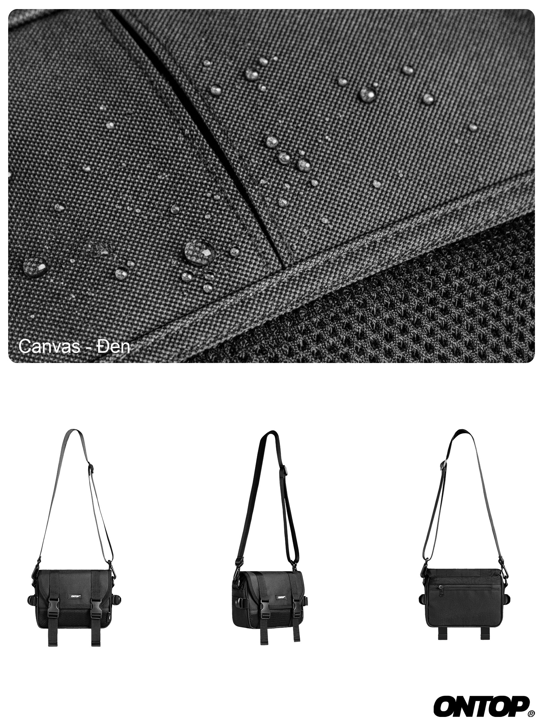 Điểm nổi bật đầu tiên của túi đeo chéo phối lưới ONTOP nằm ở chất liệu canvas. Đây là loại vải có độ bền cao, giữ form tốt và phù hợp cho việc sử dụng thường xuyên trong môi trường đô thị. Canvas giúp túi đứng dáng, hạn chế biến dạng khi đựng đồ và mang lại cảm giác chắc tay khi sử dụng.