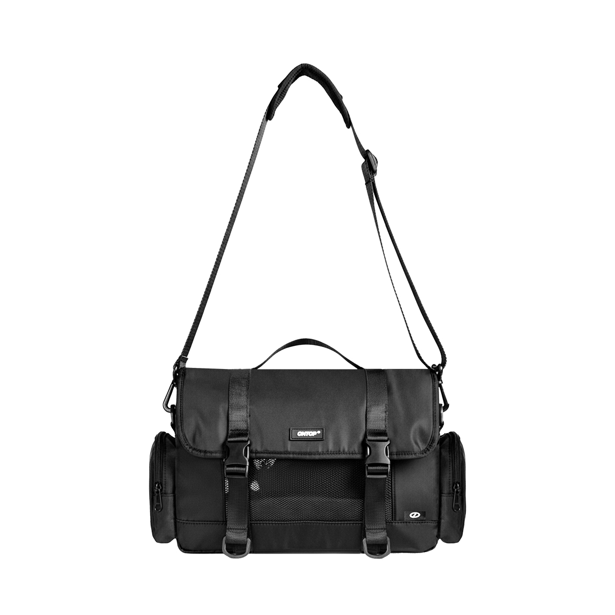 Phía sau túi là một ngăn kéo riêng, phù hợp để cất những món đồ cần thao tác nhanh nhưng vẫn đảm bảo an toàn. Hai bên hông túi được bố trí thêm hai túi nhỏ có khóa kéo, tăng khả năng chứa đồ mà không làm mất form tổng thể. Mặt ngoài còn có túi lưới khóa kéo, vừa tăng tính thẩm mỹ vừa mang đậm tinh thần street – utility đặc trưng của ONTOP.