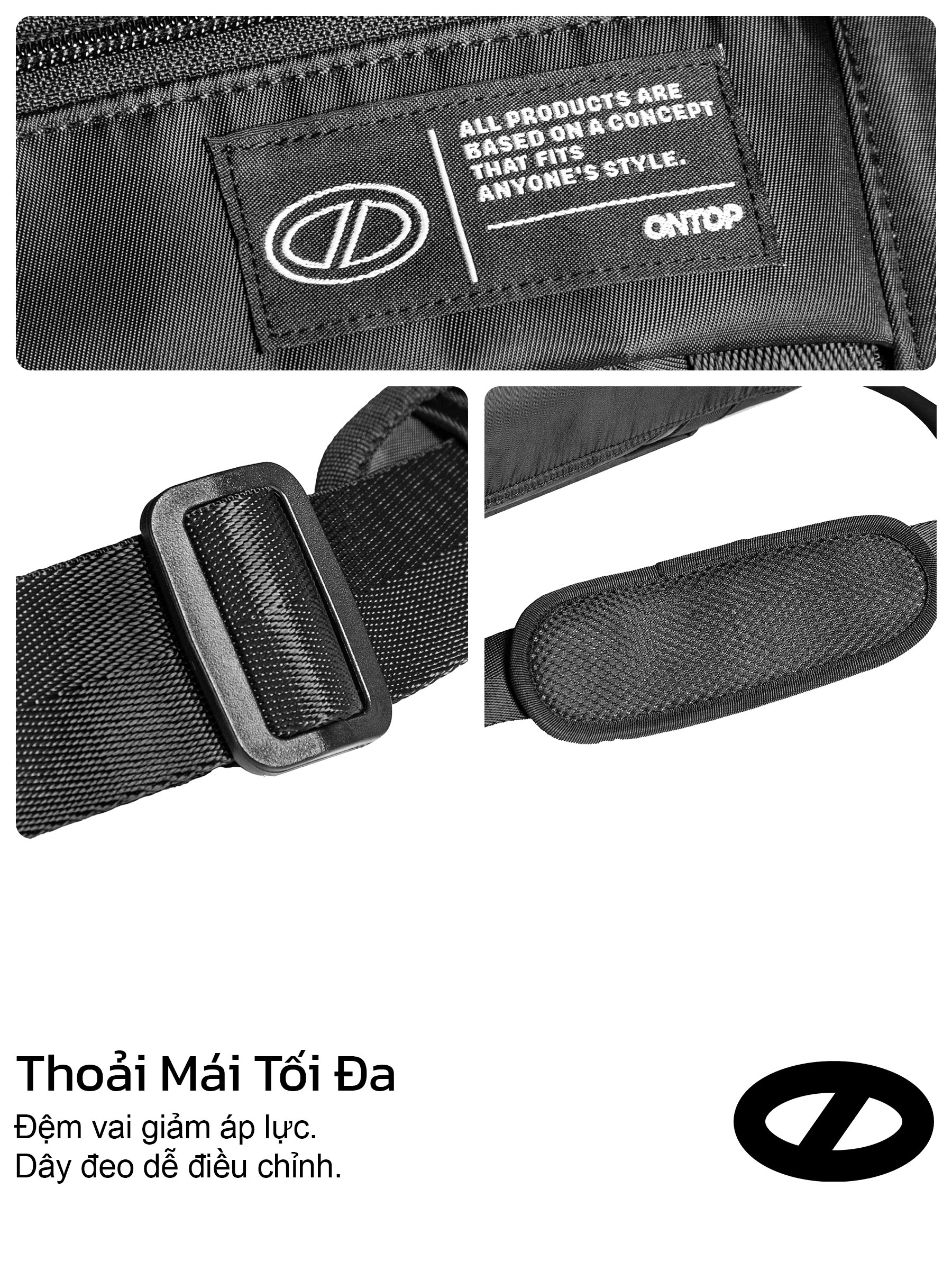 Hai bên thân túi được trang bị túi phụ có dây rút, vừa tăng khả năng chứa đồ vừa tạo điểm nhấn đúng tinh thần utility – khám phá mà ONTOP theo đuổi.