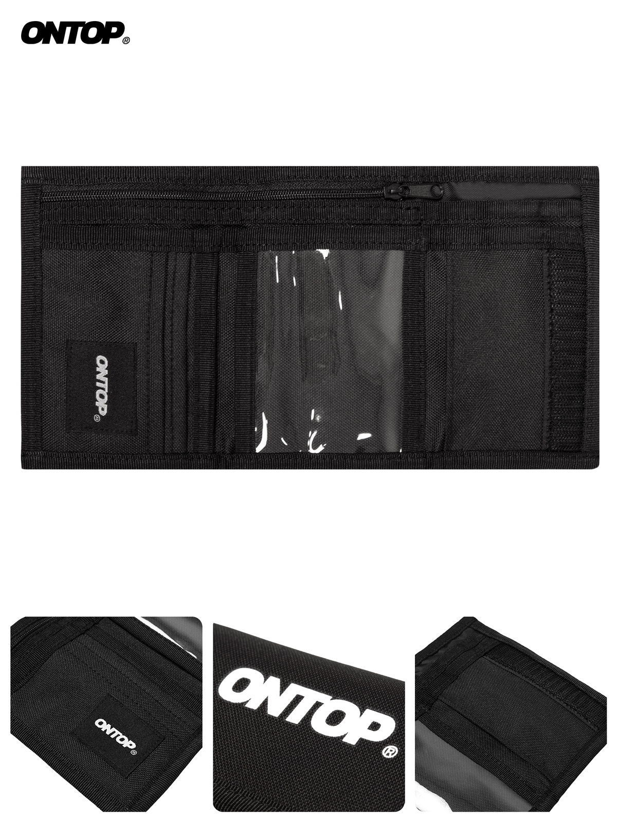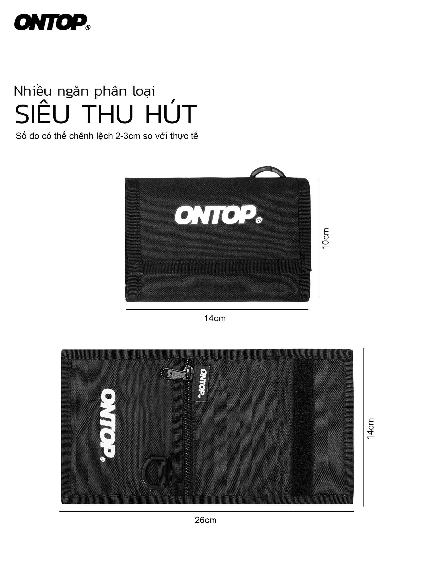 Ví local brand ONTOP new logo có thiết kế trơn một màu đơn giản. Ví có màu đen toàn bộ, điểm nhấn là chữ ONTOP được in màu trắng, chính giữa ví làm nổi bật, thu hút ánh nhìn từ cái nhìn đầu tiên. Màu đen làm nền giúp ví của bạn sẽ sạch sẽ, không bị bẩn nhiều và lâu cũ theo thời gian.