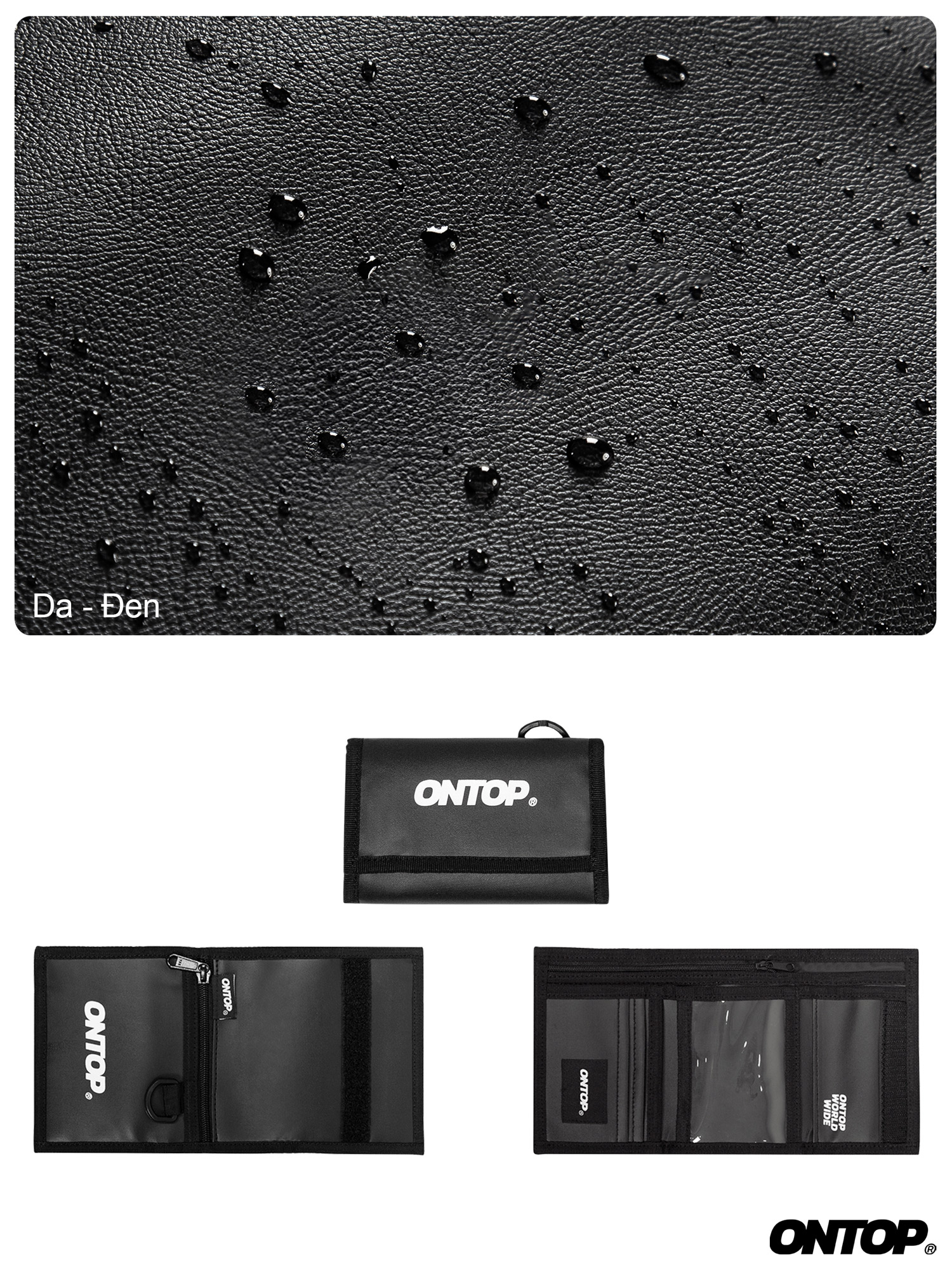 Đập vào mặt là chữ ONTOP màu trắng, nổi bật giữa nền đen trơn của ví giúp tạo điểm nhấn, khẳng định thương hiệu ONTOP local brand. Ví có khả năng gấp làm ba biến ví của bạn trở nên nhỏ gọn, tiện lợi giúp bạn bỏ vào túi áo, túi quần một cách dễ dàng.