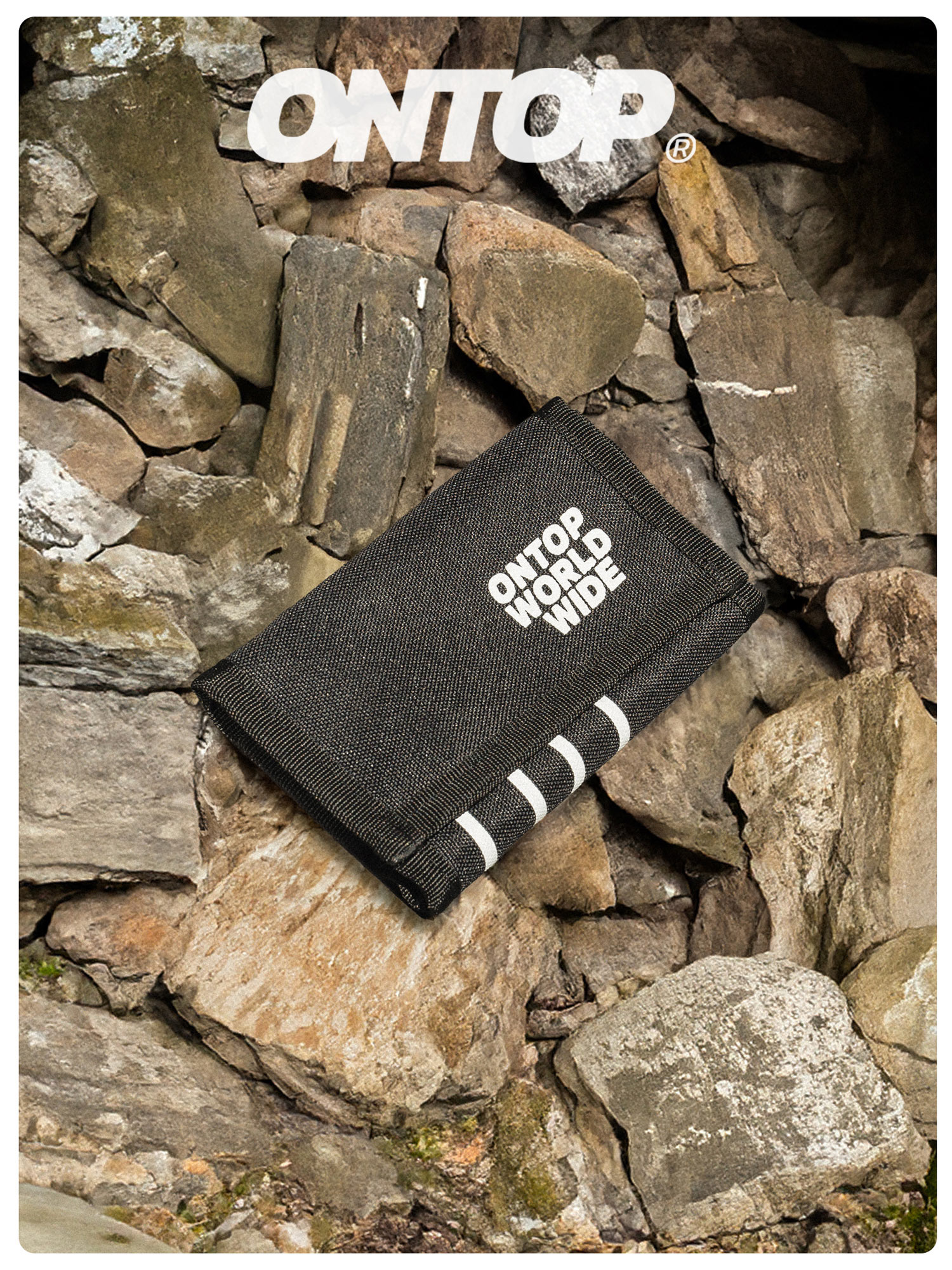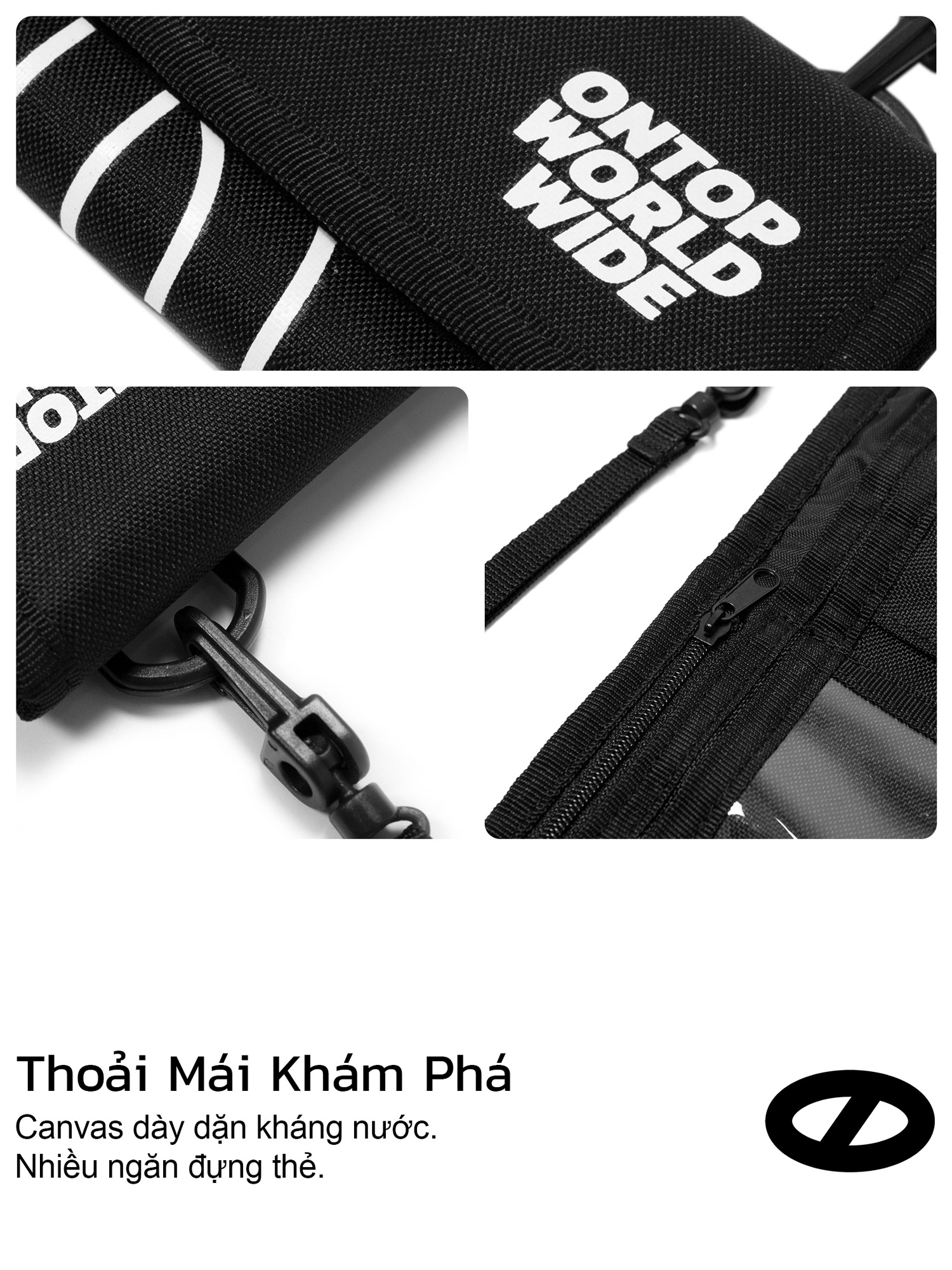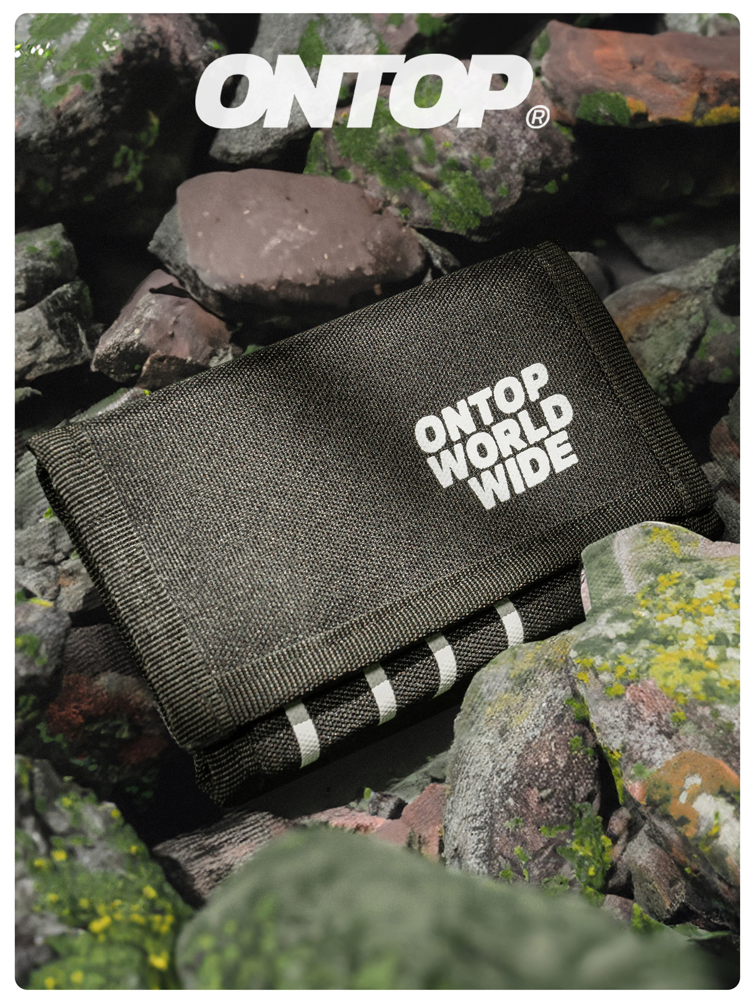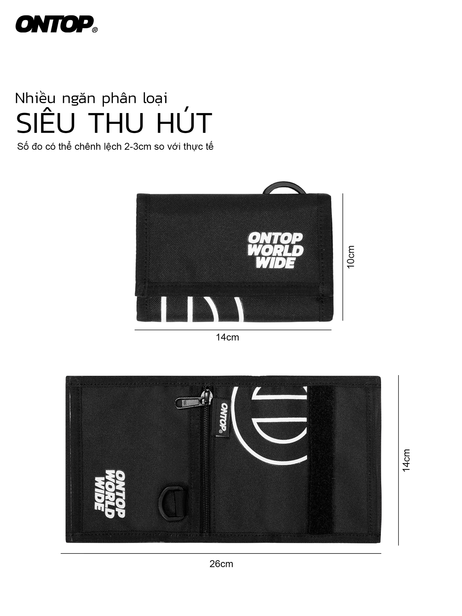 Phần chữ ONTOP worldwide màu trắng được in phía bên phải của ví local cùng với biểu tượng logo nhà ONTOP màu được in mặt sau, khi gấp lại tạo nên tổng thể phá cách, khác biệt hoàn toàn, rất độc đáo và mới lạ.